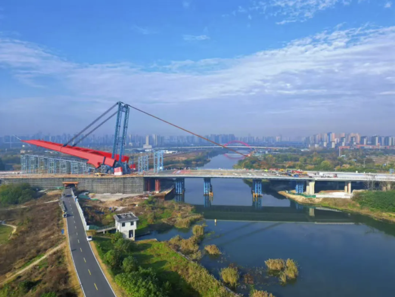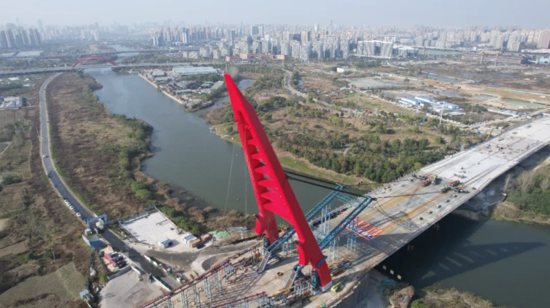 目前,项目整体建设正稳步推进。此次竖转成功,是工程从结构施工向桥面贯通冲刺的重要标志,也为后续关键节点按序推进奠定了基础。建设现场机械轰鸣、作业紧凑,呈现出大干快上、全力攻坚的火热场景。