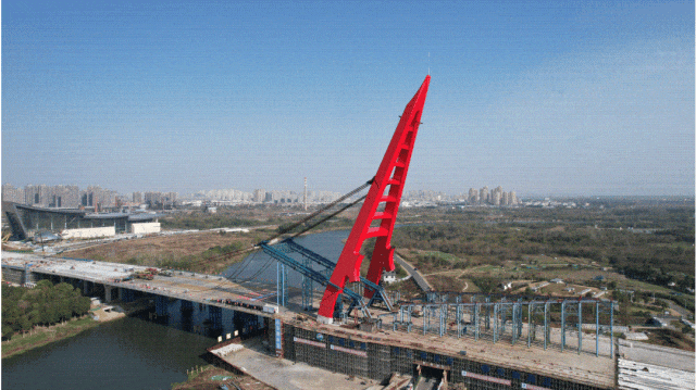 115米巨塔“空中转身”!龙岗路跨南淝河特大桥成功竖转