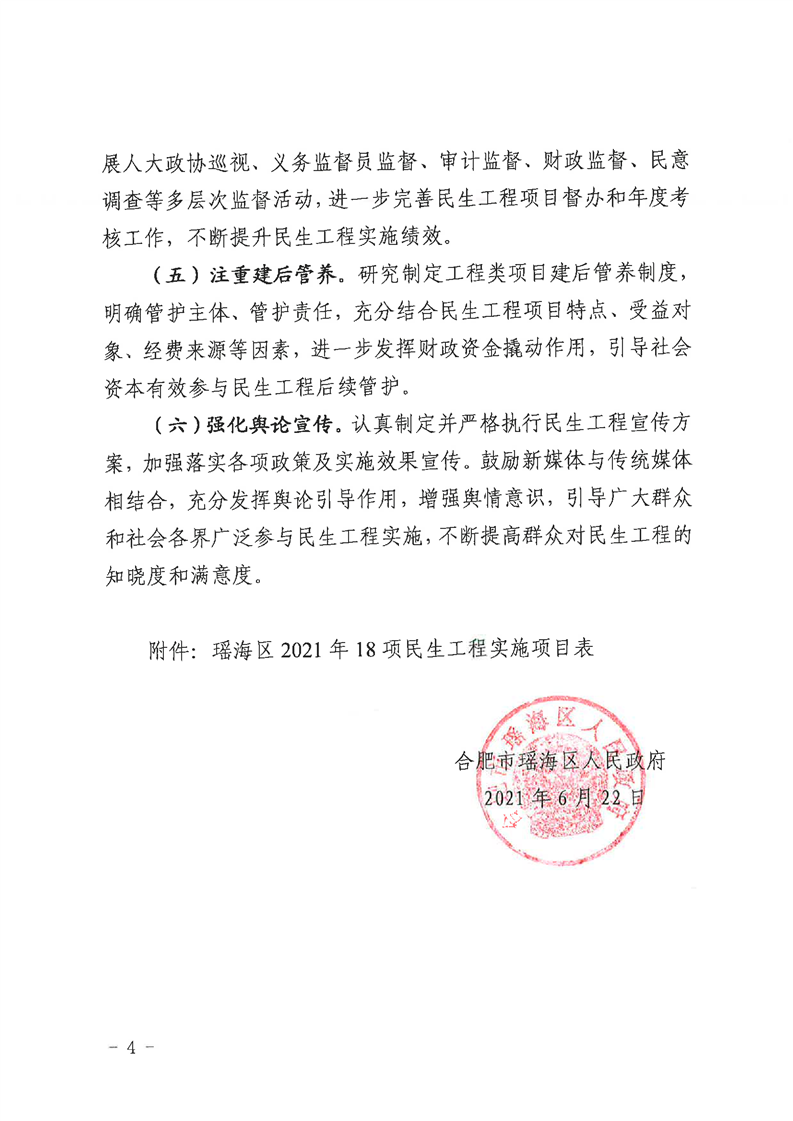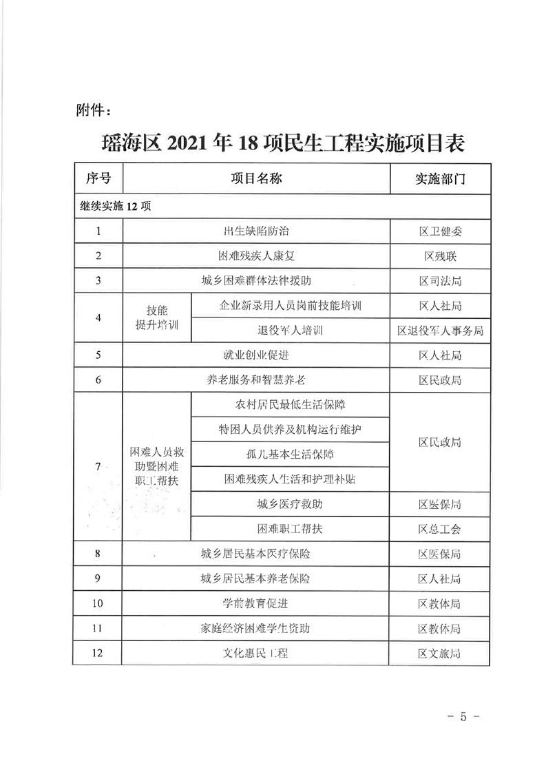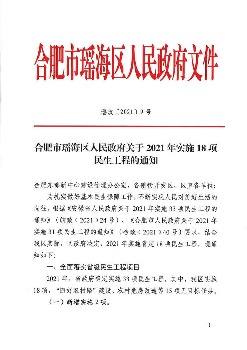 关于印发《2021年实施18项民生工程》的通知_瑶海区人民政府(政府办公室)