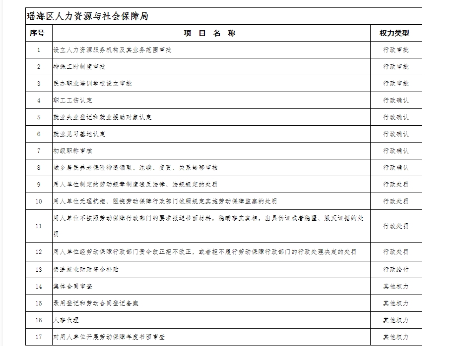 【行政权力和责任清单】瑶海区人社局权力清单和责任清单目录
