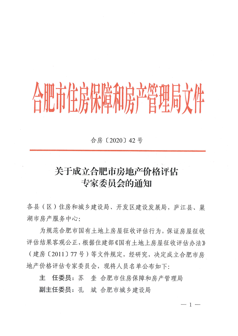 关于成立合肥市房地产价格评估委员会的通知及专家名单 |