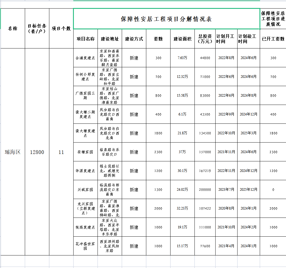 【棚户区改造项目计划表】瑶海区2023年7-9月棚户区改造 |