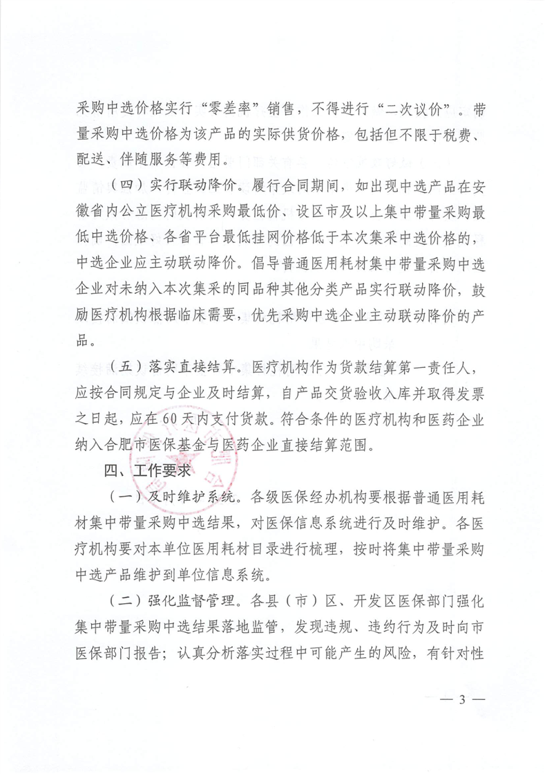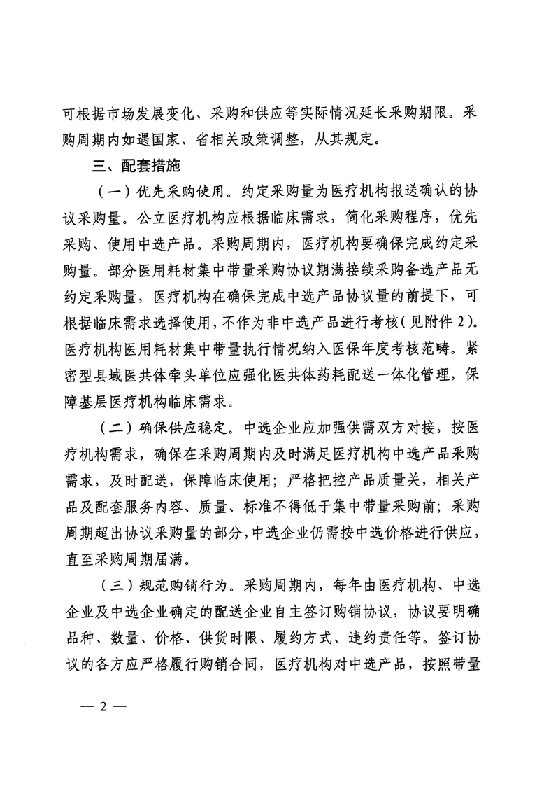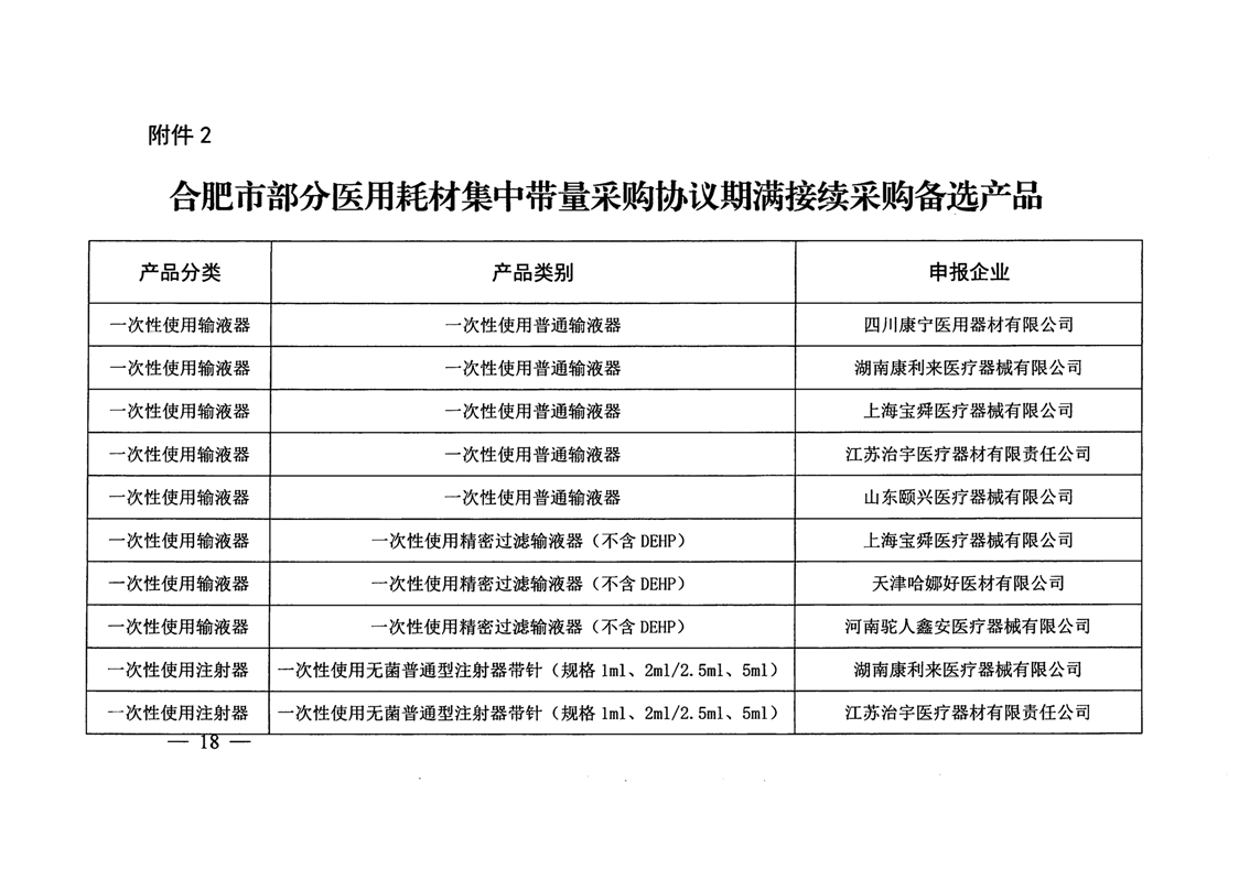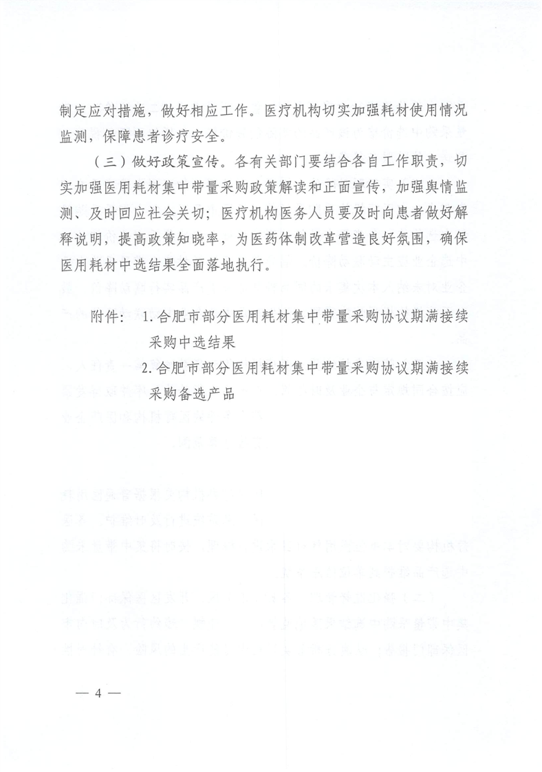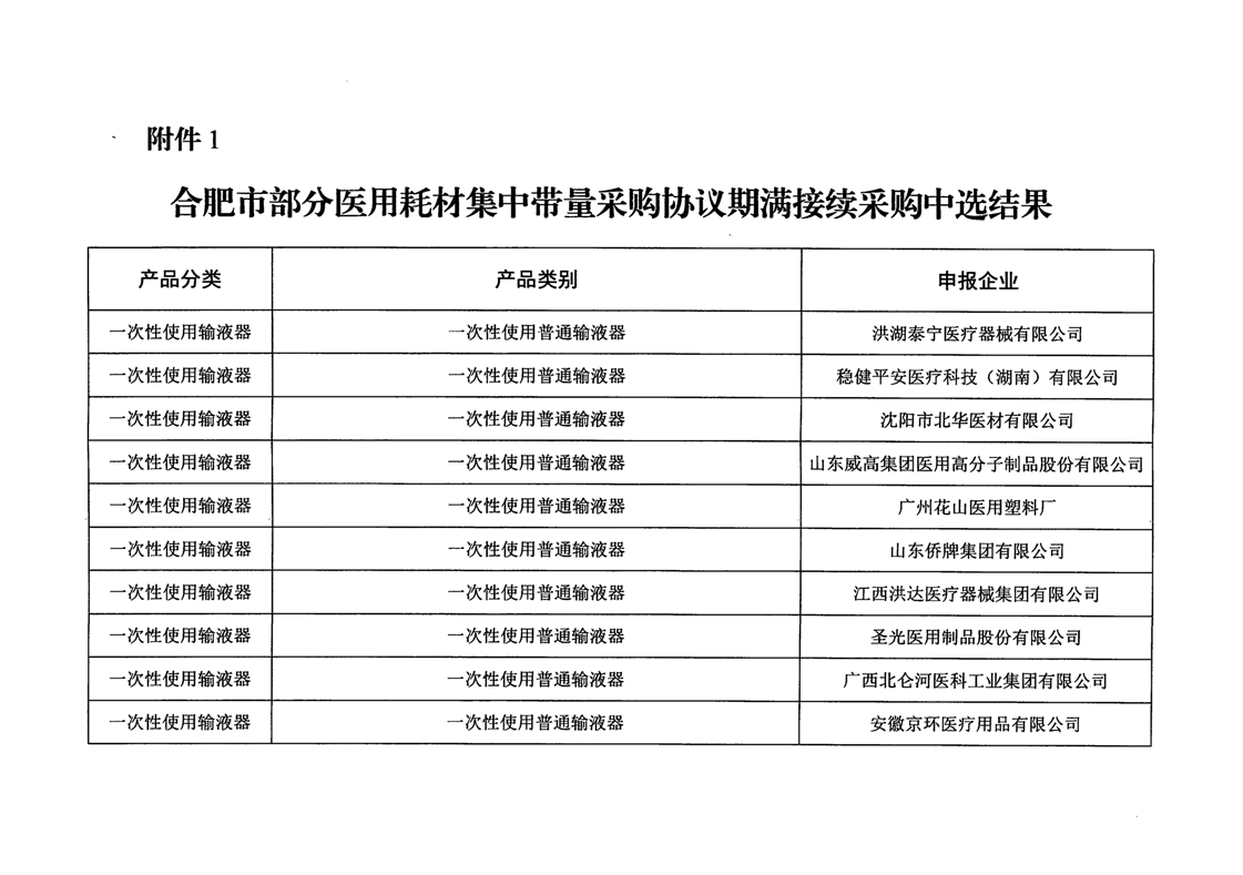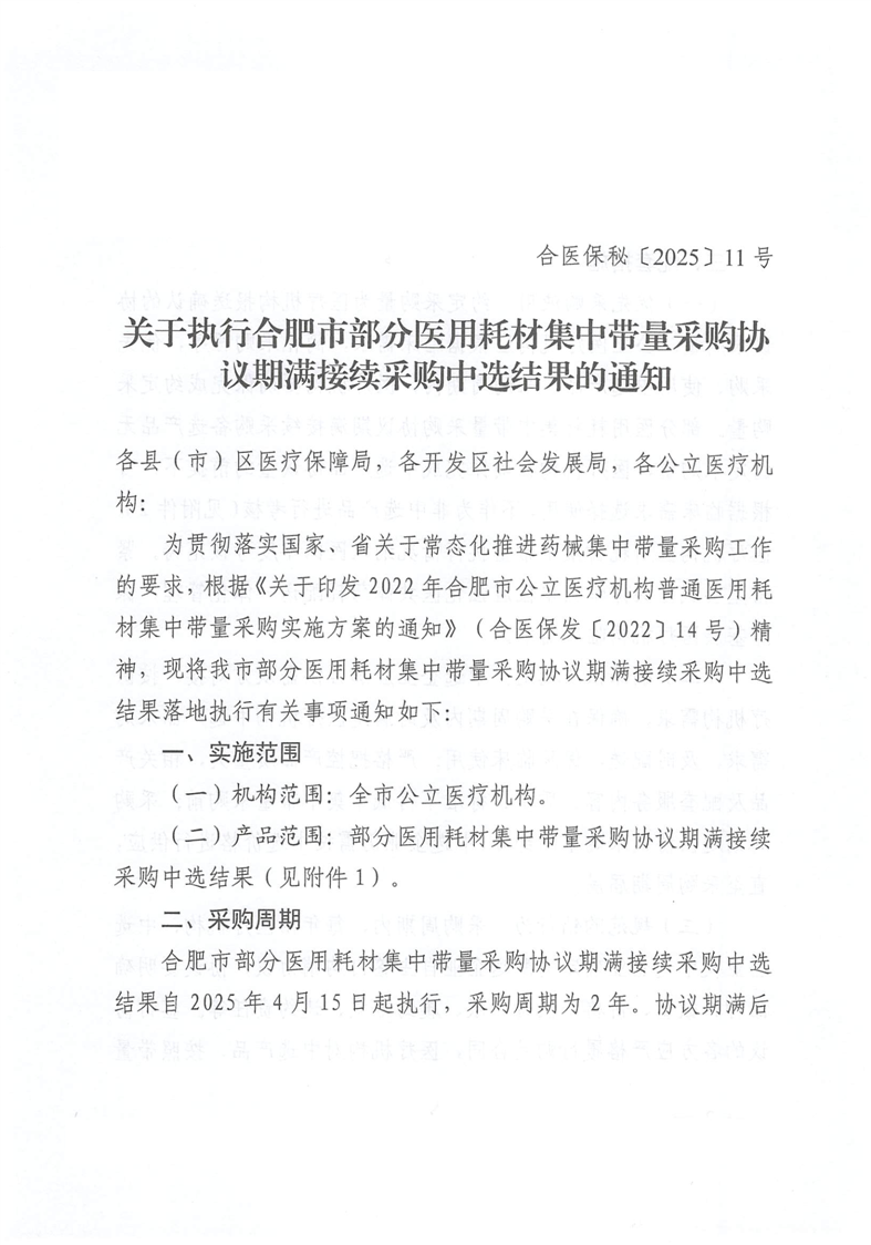 关于执行合肥市部分医用耗材集中带量采购协议期满接续采购中选结果的通知 |
