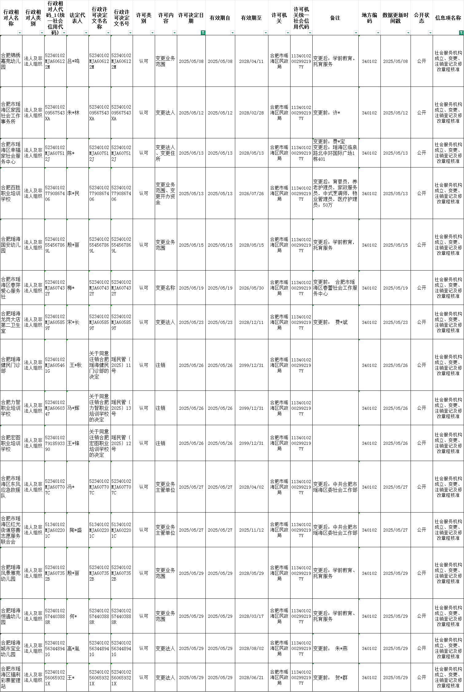 区民政局2025年5月份民办非企业成立、变更、注销审批情况 |