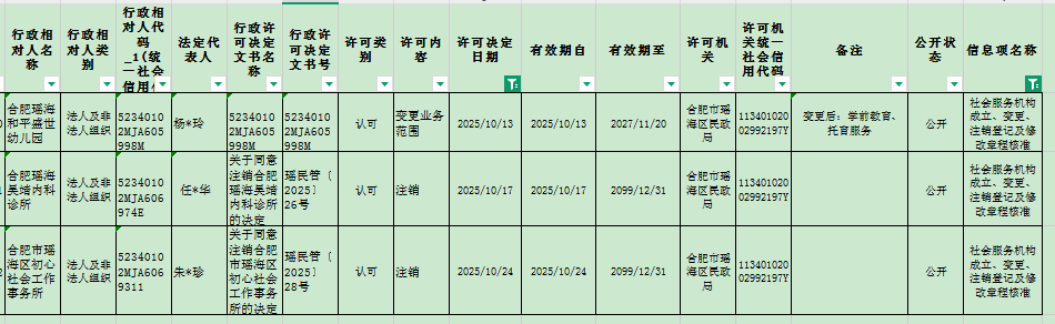 区民政局2025年10月份民办非企业成立、变更、注销审批情况 |