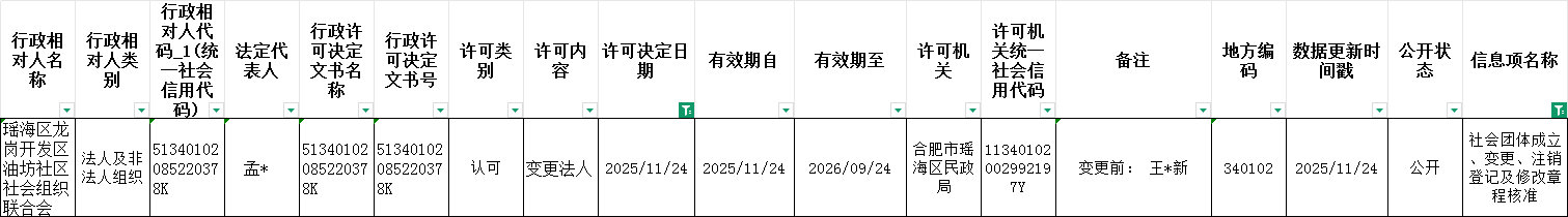 区民政局11月份社会团体成立、变更、注销审批情况