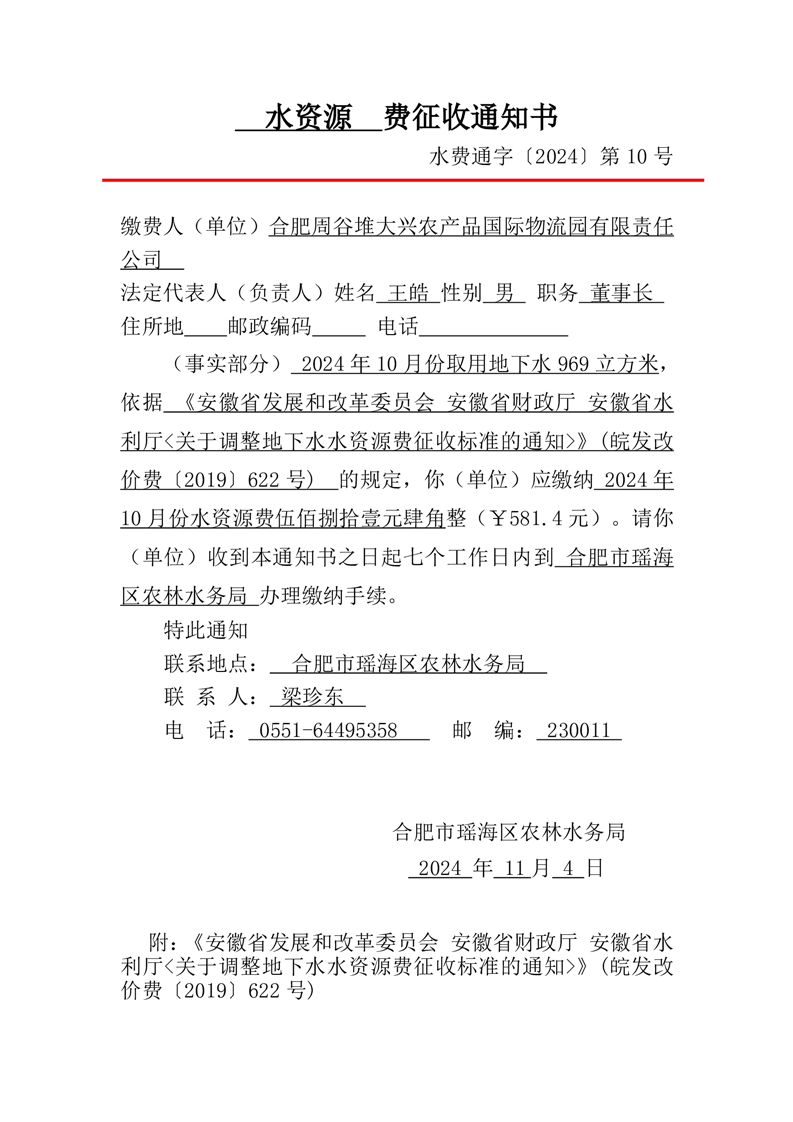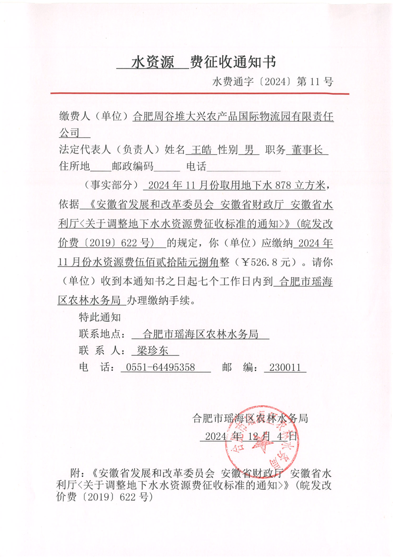 【行政征收】瑶海区农林水务局2024年第四季度水资源费征收情况 |