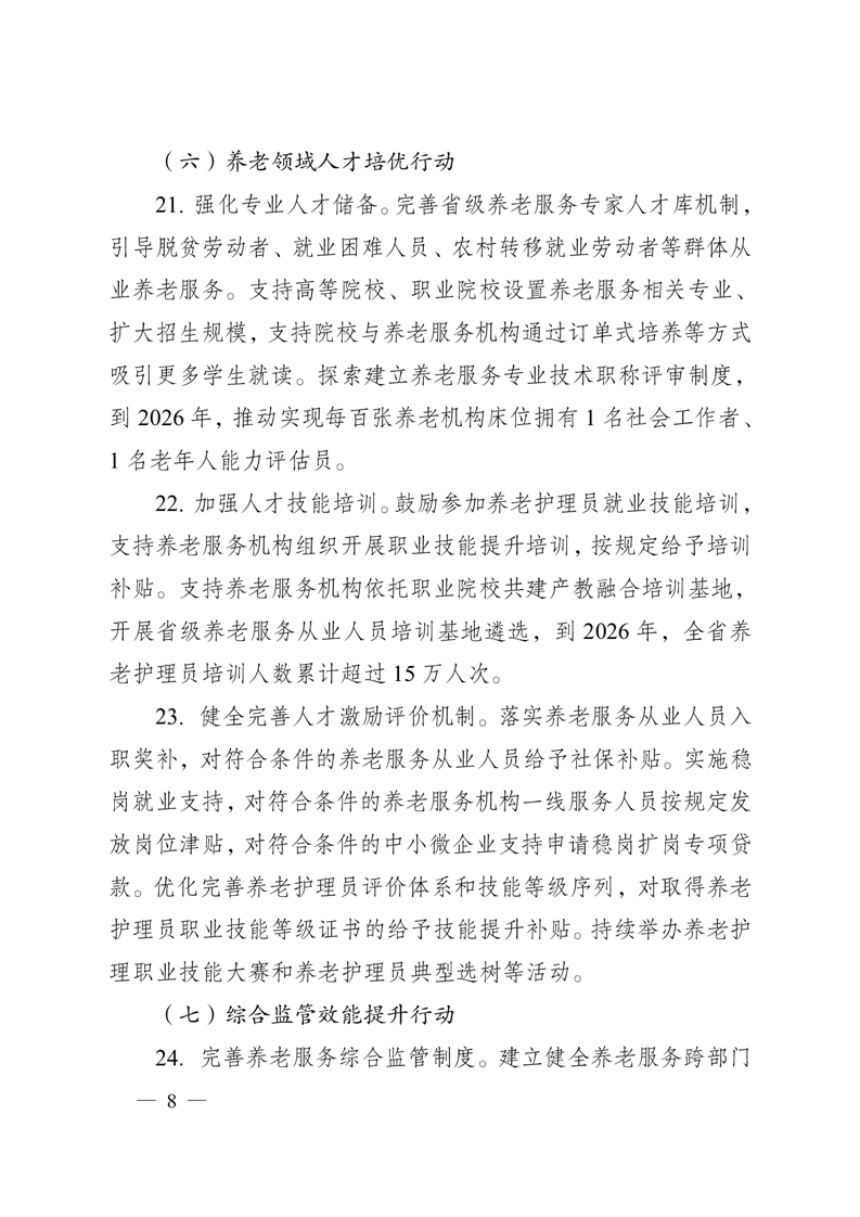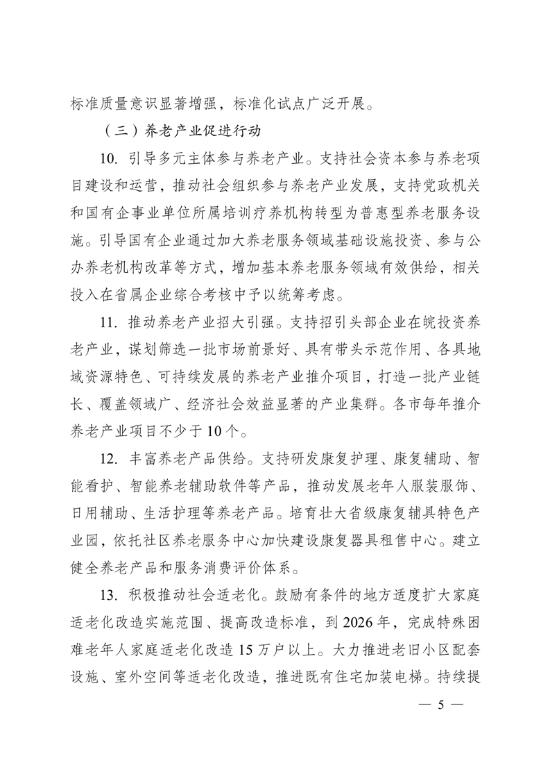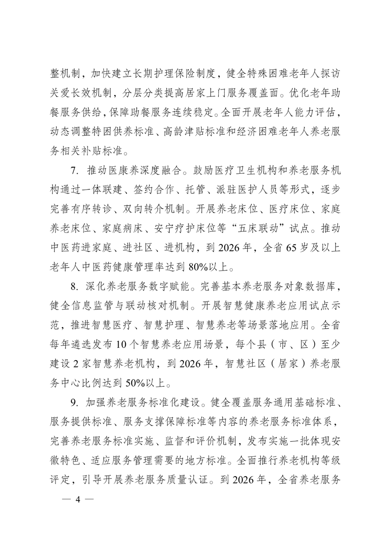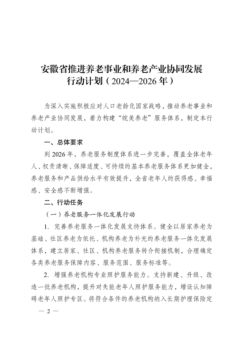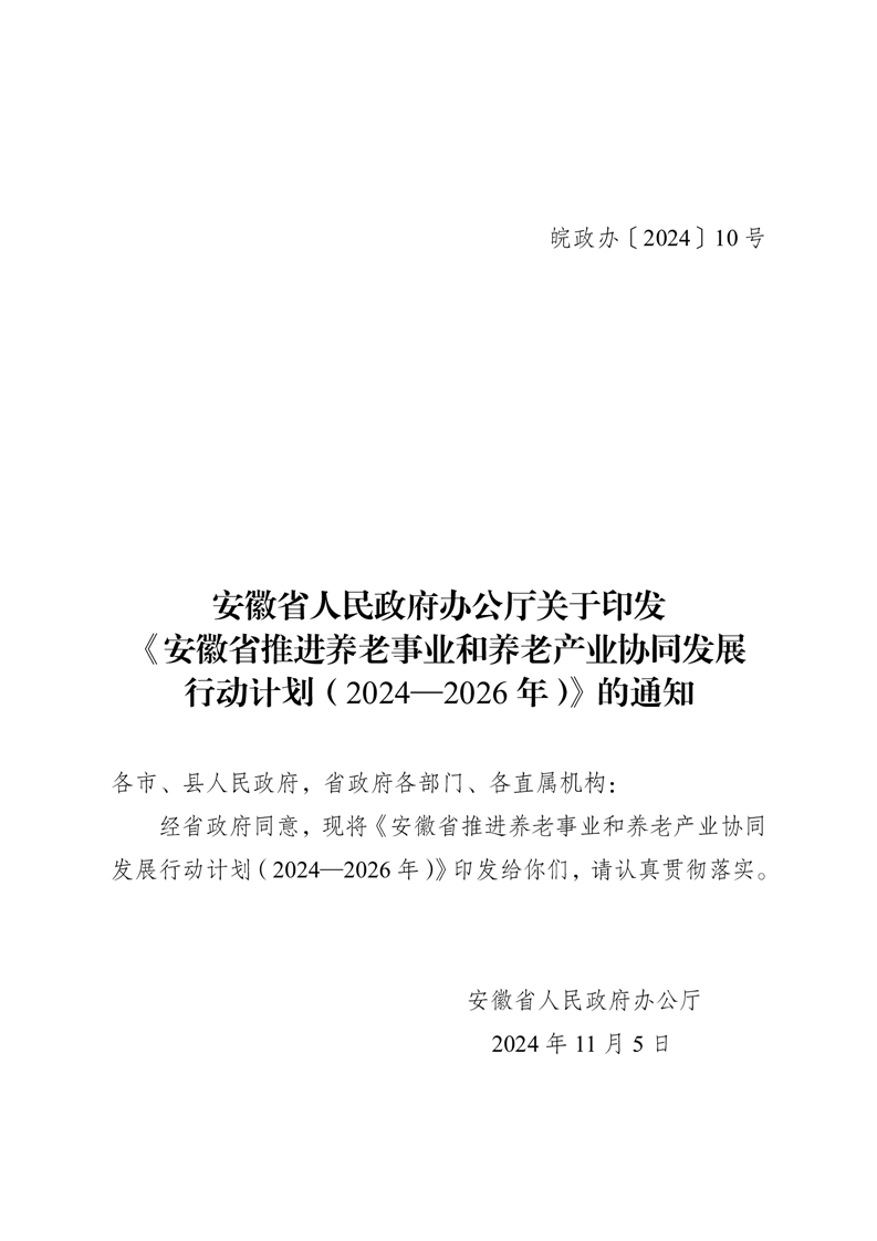 安徽省人民政府办公厅关于印发《安徽省推进养老事业和养老产业协同发展行动计划(2024—2026年)》的通知