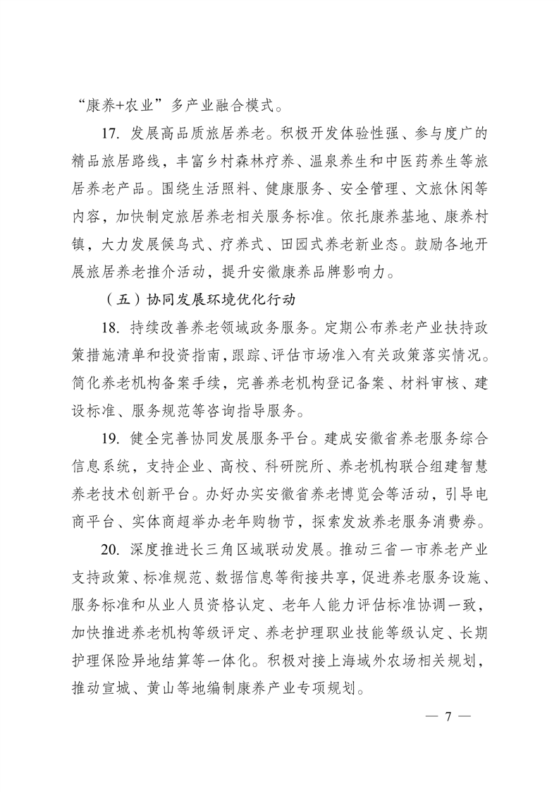 安徽省人民政府办公厅关于印发《安徽省推进养老事业和养老产业协同发展行动计划(2024—2026年)》的通知_合肥市瑶海区人民政府
