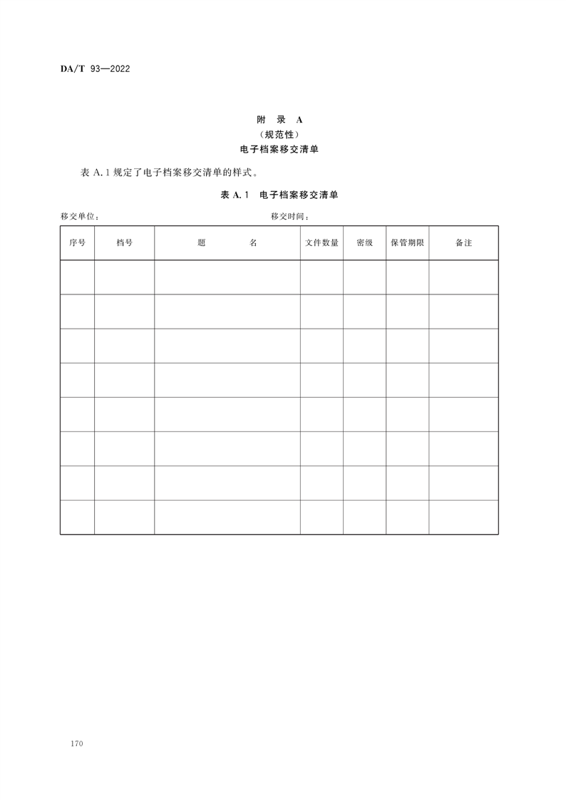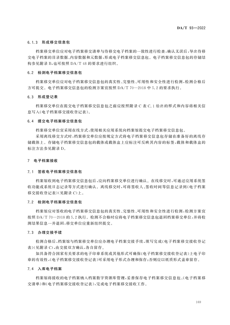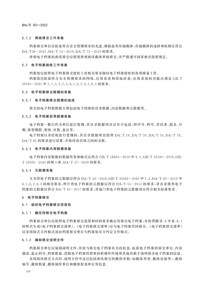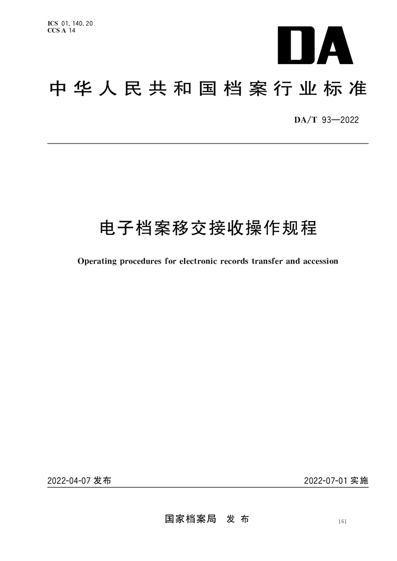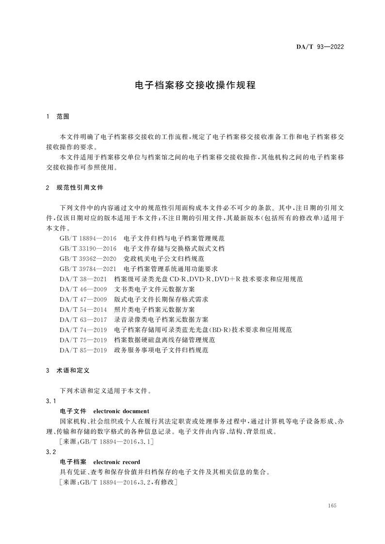 DAT 93—2022电子档案移交接收操作规程_合肥市瑶海区人民政府