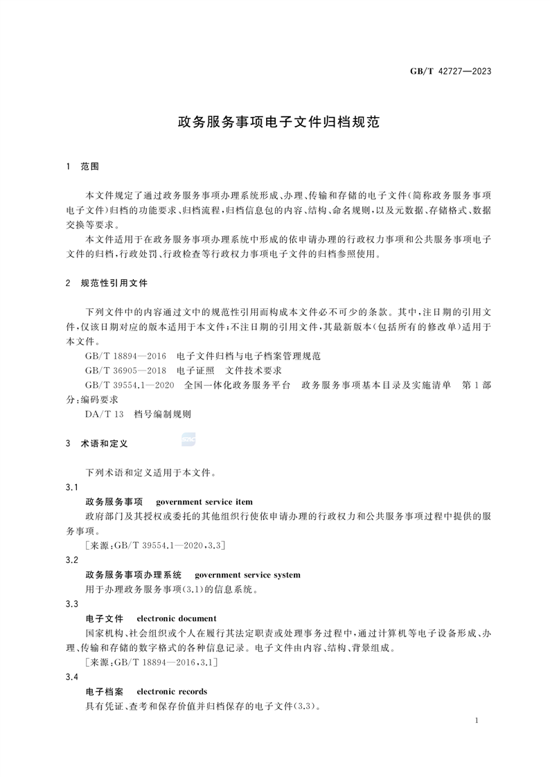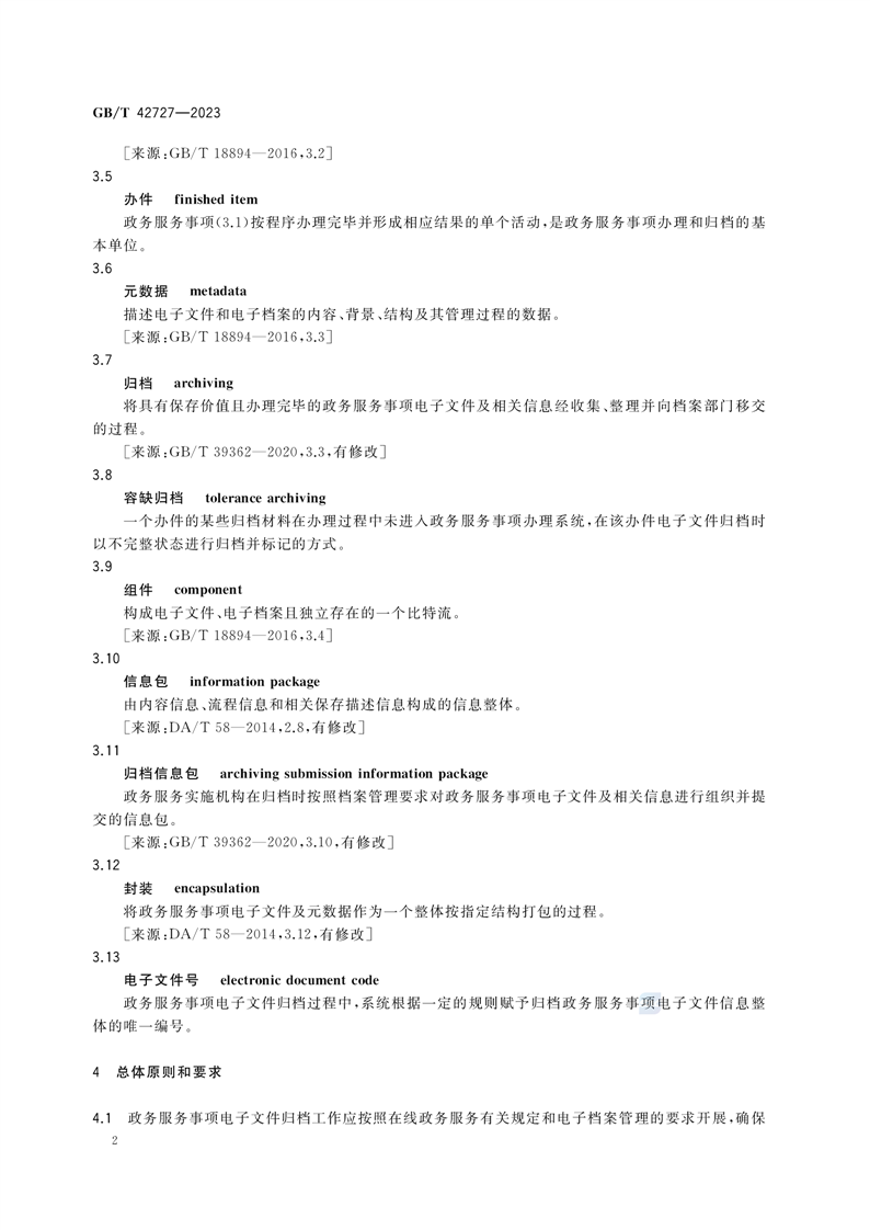 GBT+42727-2023政务服务事项电子文件归档规范