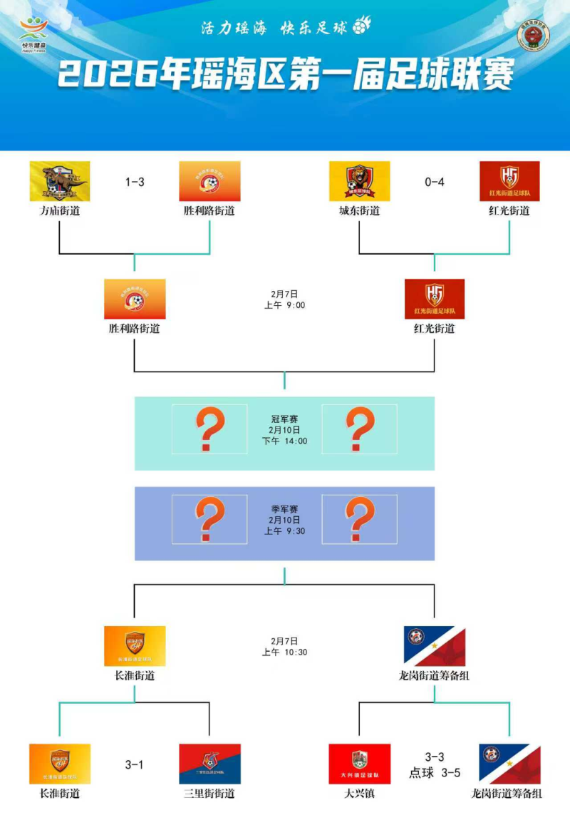 每一次射球都迎来欢呼,每一声呐喊都饱含激情!2月1日,瑶海区首届足球联赛八进四淘汰赛正式打响,四场强强对决高潮迭起,胜利路街道、红光街道、长淮街道、龙岗街道筹备组四支队伍杀出重围,成功晋级四强,为全区球迷献上了一场酣畅淋漓的绿茵盛宴。